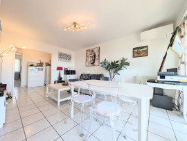 Exposition sud-ouest très lumineuse. Vaste séjour ouvrant sur terrasse plein sud pour diner entre amis en extérieur avec vue mer. Cuisine indépendante séparée, entièrement équipée.