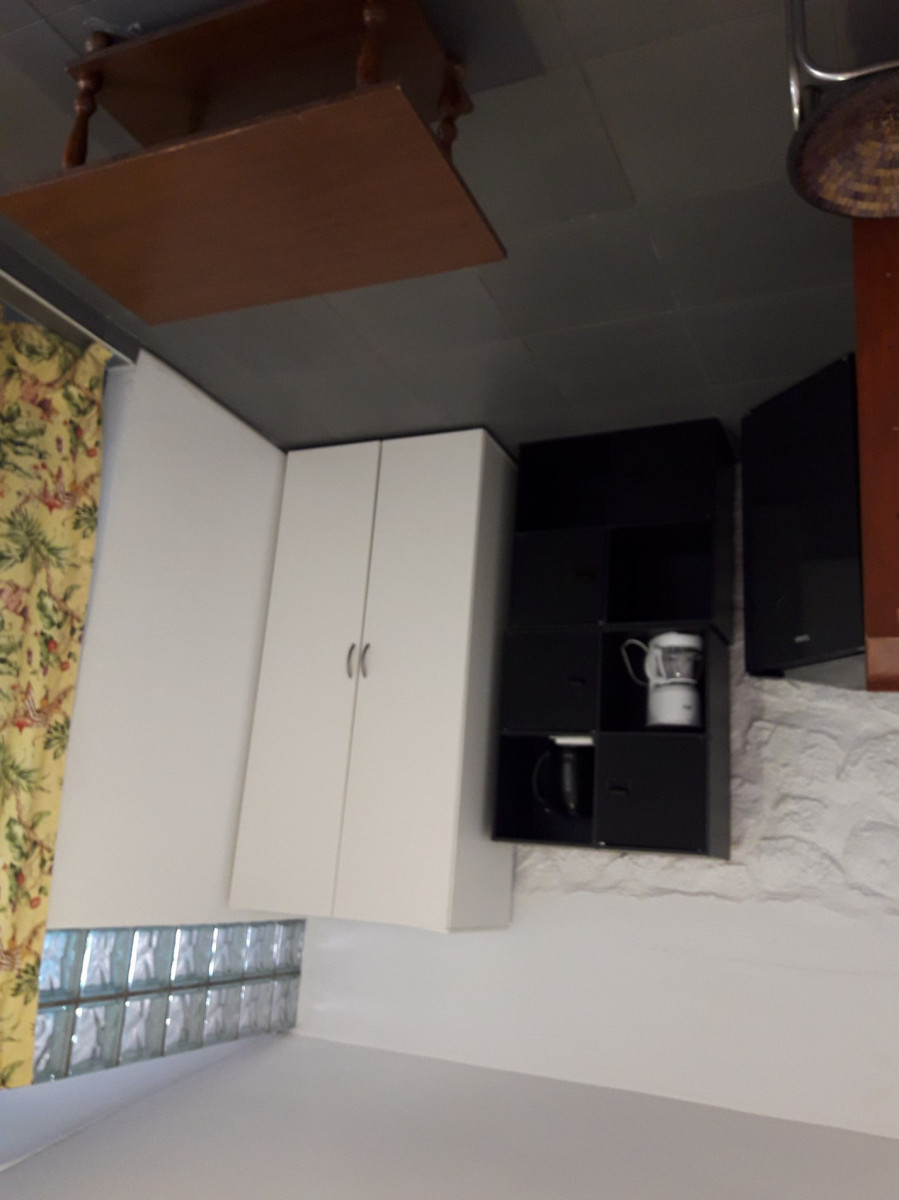 En privatif : chambre avec canapé lit, bureau, armoire + salle de bain avec douche à l'italienne et WC// en commun avec 2 autres studios : 1 grande cuisine de 20m2 et buanderie, totalement équipé.
