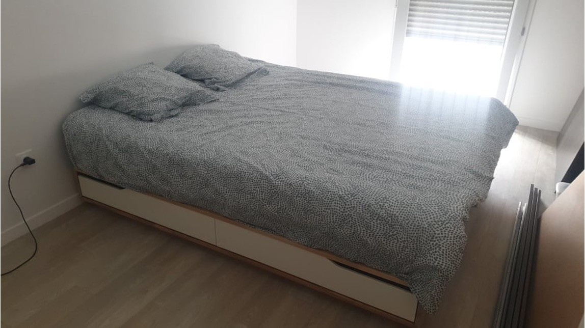 Chambre 1 ( 10.71mètres carré) : lit coffre 190 X 140 et penderie aménagée