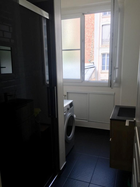 - Salle de bain avec grande douche italienne / machine à laver et séchante Thomson, sèche serviettes Sauter.