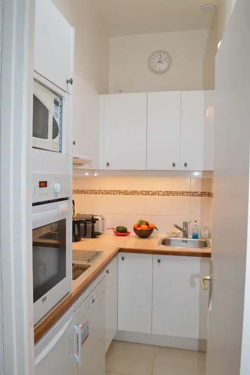 Ce charmant appartement situé au 2ème étage d'un immeuble du 18ème siècle dispose d'un salon exceptionnel doté d'un plafond cathédrale voûté de 4 mètres de haut et de poutres en chêne d'origine.