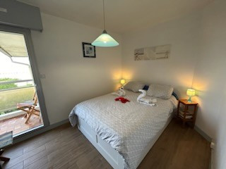 Appartement f2 front de mer accès directe plage au 1er étage dans résidence de 2 étages vue mer sur toutes les baies vitrées et sur le balcon comportant salon de jardin- parking pied immeuble à LUC SUR MER (Calvados) plage du débarquement proche commerces casino thalasso couchage possible 4 personnes machine à laver le linge et vaisselle Wifi