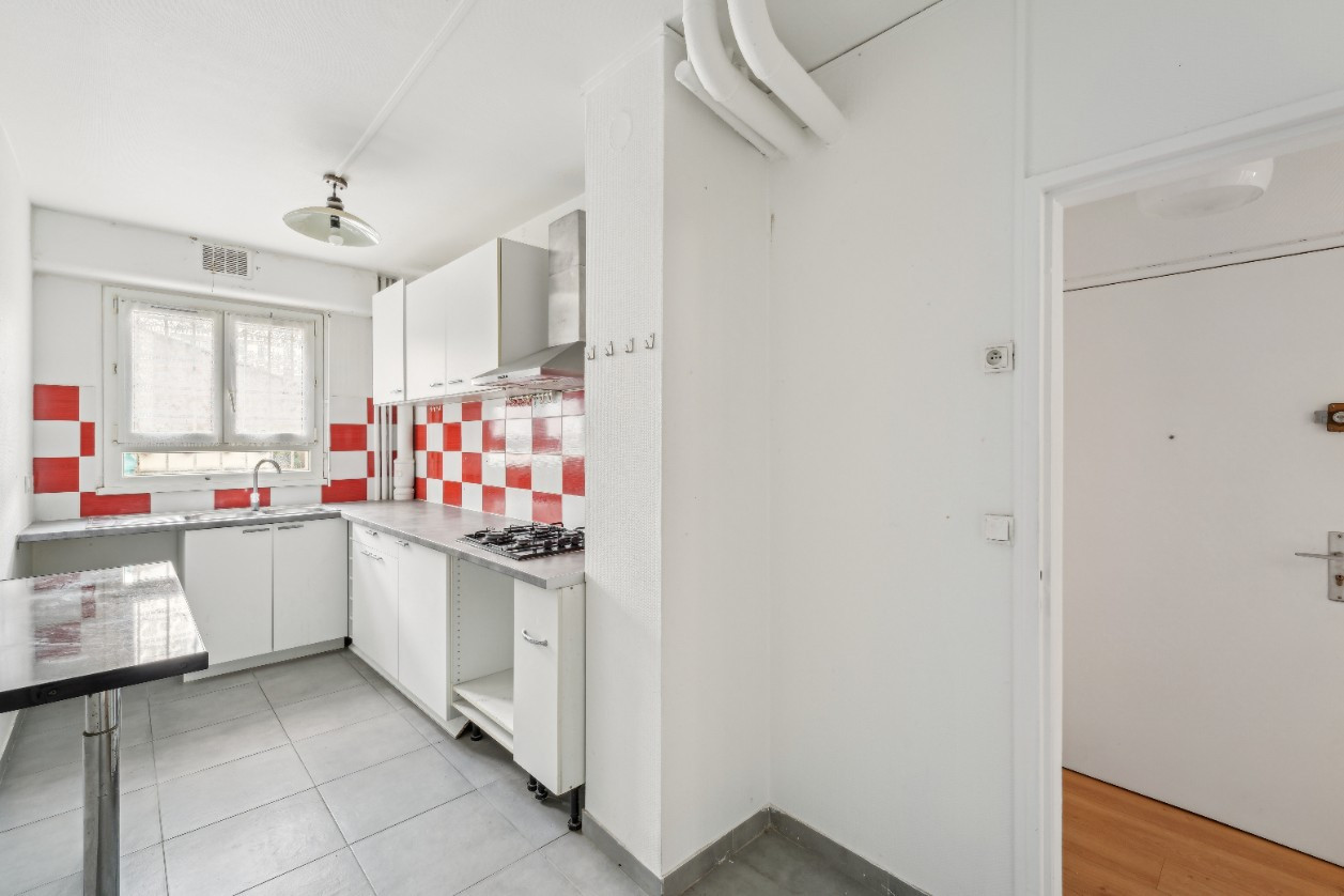 Un appartement de 2 pièces de 58 mètres carrés au rez-de-chaussée d’une résidence datant de 1969.