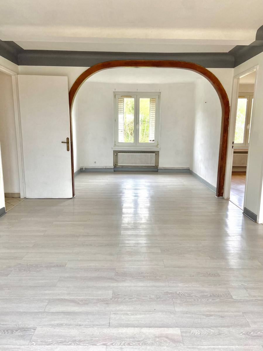 Appartement de 5 pièces comprenant trois chambres lumineuses de 12 mètres carrés chacune, une pièce de vie de 30 mètres carrés avec un petit balcon, une cuisine séparée et une salle de bains avec baignoire.