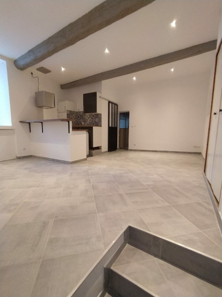 Charme de l'ancien mélangé au moderne, ce T2 de 37 m2 a été entièrement rénové tout est neuf y compris la cuisine (carrelages, plaque vitrocéramique, hôte suspendue inox, évier, plan de travail imitation chêne, crédence type carreau de ciment, réfrigérateur type table top, peinture refaite blanche, électricité refaite, spots aux plafonds, isolation par l'intérieur, un radiateur à inertie céramique dans la pièce principale et dans la chambre, portes sur mesure type 'atelier d'art', salle de bain rénovée : bac à douche, wc suspendu, meuble de sdb avec miroir à led, et VMC. Chambre avec rangements et petite mezzanine.