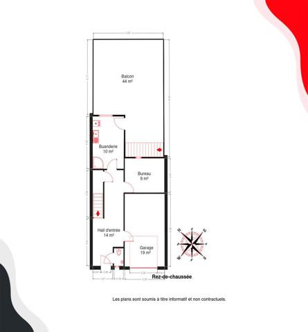Au rez-de-chaussée, un hall d'entrée donnant accès à une buanderie, un bureau et un garage.