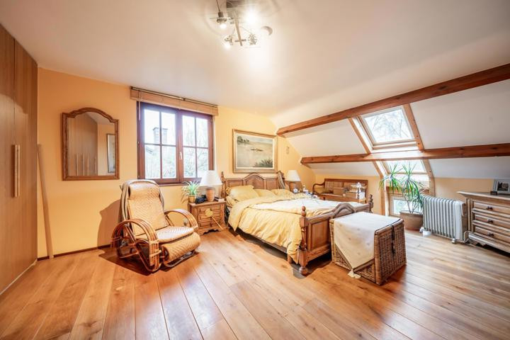 Le chauffage s'effectue par pompe à chaleur et cassette à bois dans le living, 25 panneaux photovoltaïques, les châssis sont en bois double vitrage. PEB: D, n°20221219007946. Honoraires de l'agence à charge de l'acquéreur.