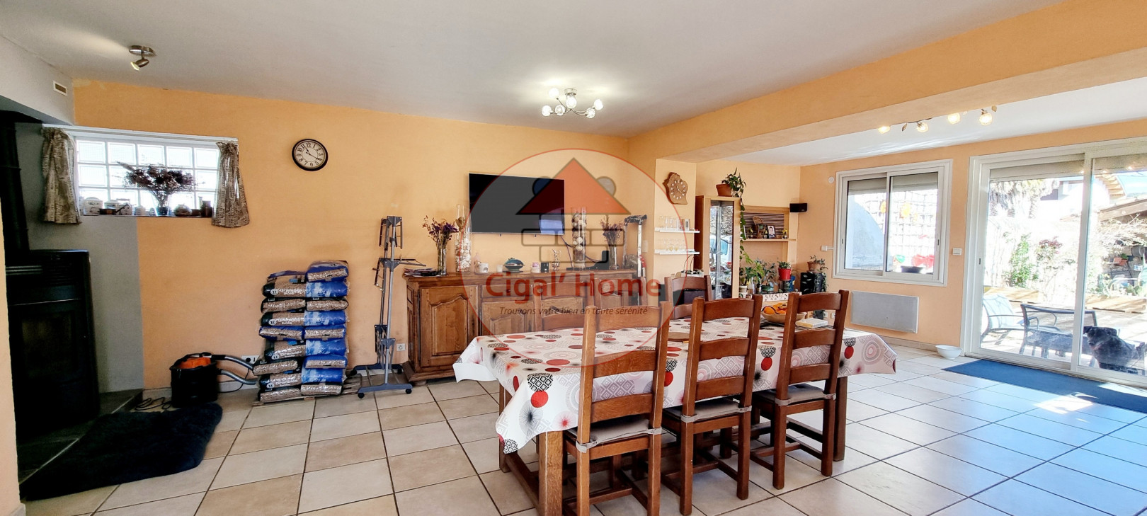 Votre agence Cigal' Home vous propose :<br><br>Vous rêvez d'une maison spacieuse et confortable, à quelques pas seulement des commerces et de toutes les commodités ? Ne cherchez plus ! Nous sommes ravis de vous présenter cette magnifique villa de 142 m², érigée sur un terrain de plus de 800 m², offrant des opportunités infinies.<br><br>Caractéristiques Principales :<br>Surface Habitable : 142 m²<br>Terrain : Plus de 800 m², piscinable<br>Rez-de-Chaussée : Pièce de vie lumineuse, cuisine moderne et fonctionnelle<br>Étage : 4 chambres spacieuses, 1 salle d'eau, 1 buanderie<br>Équipements : Poêle à granulés, climatisation<br>Extérieurs : Forage, cuisine d'été<br>Description :<br><br>Au rez-de-chaussée, découvrez une pièce de vie accueillante, baignée de lumière naturelle, créant une atmosphère chaleureuse et conviviale. La cuisine, aménagée avec goût, est le lieu idéal pour concocter de délicieux repas en famille et entre amis.<br><br>À l'étage, quatre chambres spacieuses vous attendent, offrant un espace privé à chaque membre de la famille dont 2 avec accès à une terrasse de 20 m² avec vue sur les Corbières. Une salle d'eau moderne, un WC séparé et une buanderie complètent ce niveau, assurant un confort optimal au quotidien.<br><br>L'extérieur vous réserve de nombreuses surprises avec un vaste terrain piscinable, idéal pour les journées ensoleillées. Profitez également d'un forage, assurant une source d'eau indépendante, et d'une cuisine d'été, parfaite pour des moments de détente en plein air.<br><br>Ne ratez pas l'opportunité d'acquérir cette maison exceptionnelle, alliant confort, modernité et cadre de vie enchanteur. Contactez-nous dès maintenant pour organiser une visite !<br>Honoraires inclus de 4.17% TTC à la charge de l'acquéreur. Prix hors honoraires 360 000 . Classe énergie C, Classe climat A Montant moyen estimé des dépenses annuelles d'énergie pour un usage standard, établi à partir des prix de l'énergie de l'année 2021 : entre 1240.00 et 1730.00 . Nos honoraires : https://files.netty.immo/file/company33983pvr/149/khK3j/affiche_honoraires_2023.pdf Les informations sur les risques auxquels ce bien est exposé sont disponibles sur le site Géorisques : georisques.gouv.fr <br>Carte pro. CPI11022019000043462 Du00e9livru00e9e par la CCI de l'Aude